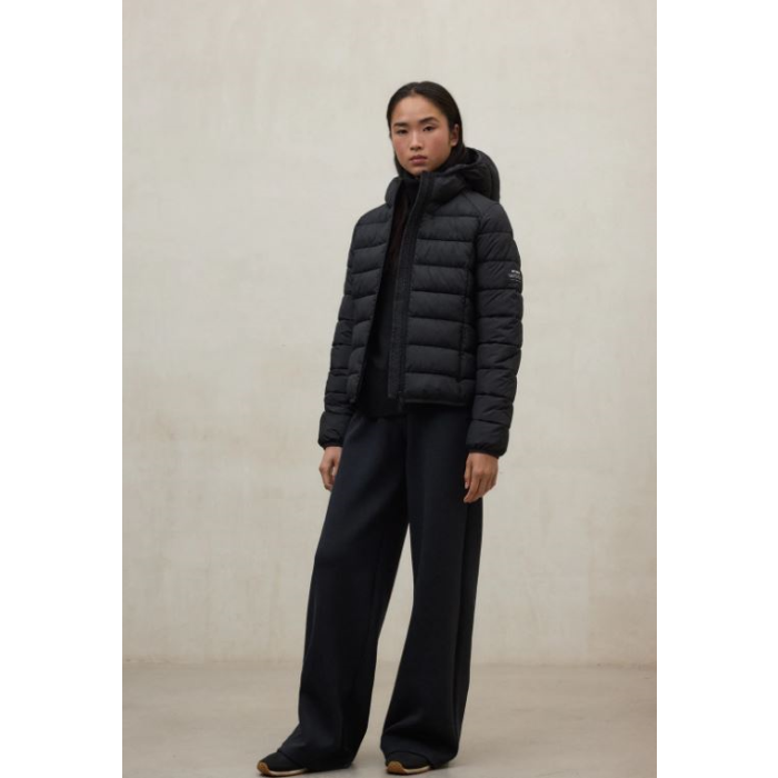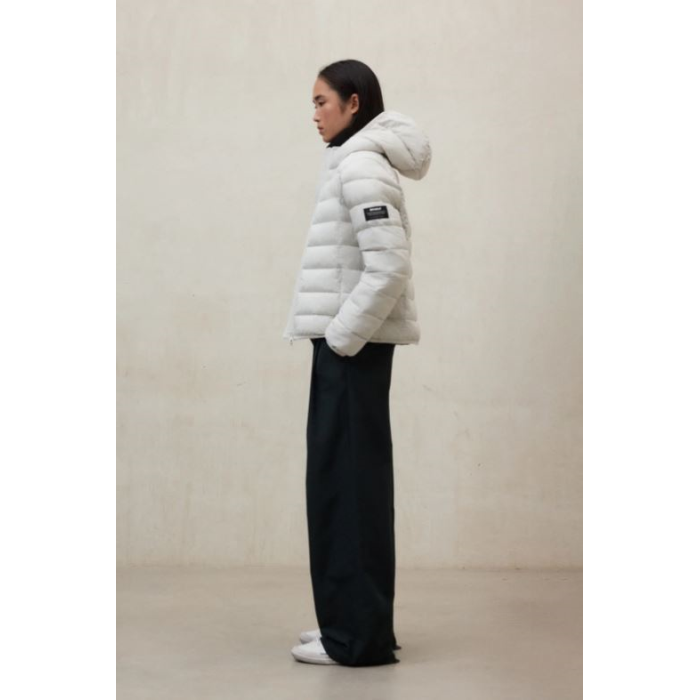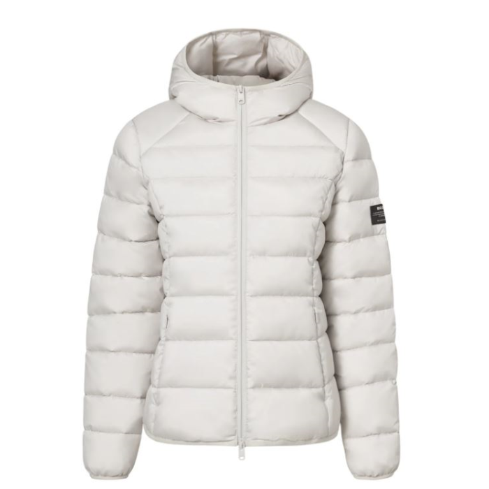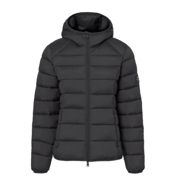 Ajuste regular Largo a la cadera Cierre frontal con cremallera Acabado con ribete en puños, bajo y capucha Bolsillos con cremallera insertados en las costuras laterales Estampado de marca en la parte interior trasera Adornos con marca Repelente al Agua Libre de Pfc Vegano