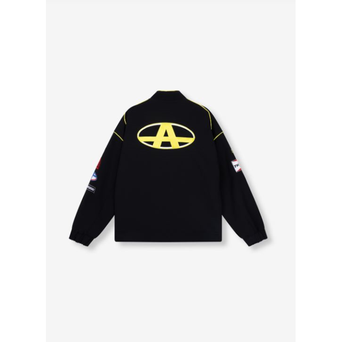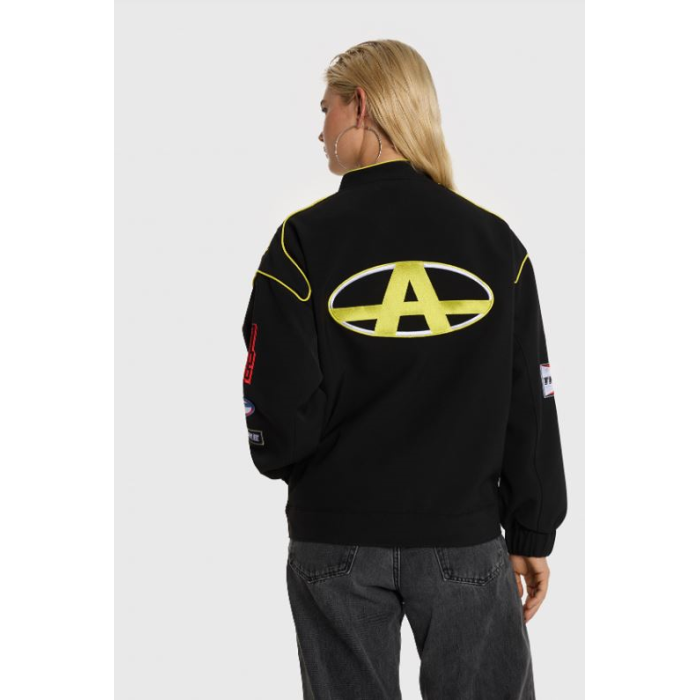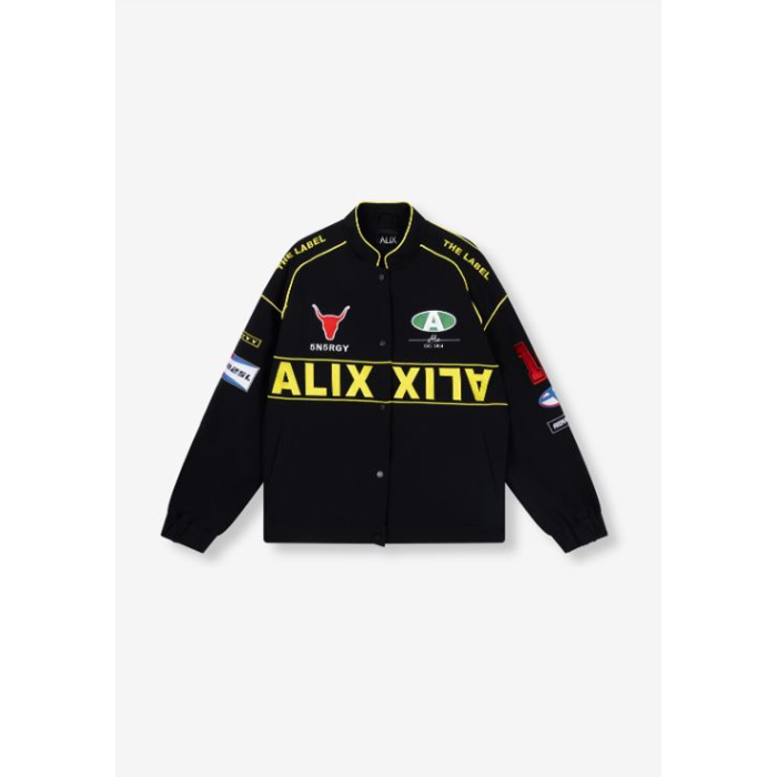 Chaqueta de gran tamaño confeccionada en tejido limpio.Diseñado con ribetes en las mangas de los hombros.Con múltiples bordados ALIX por toda la chaqueta.