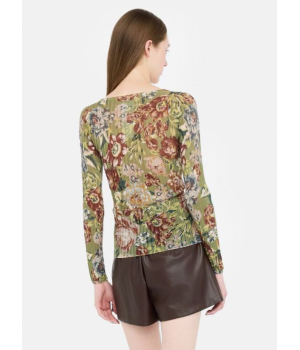 Jersey de punto canalé inglésHilos de mezcla de viscosaInserciones de lurex®Estampado por toda la prendaEscote de pico perfilado