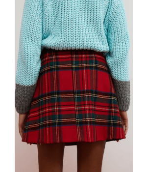 Un buen look empieza por una falda con carácter. Falda corta roja de cuadros escocés. Dos bolsillos delanteros de parche. Cierre lateral con cremallera en color neón, a contraste. Diseño estructurado y ligeramente acampanado.