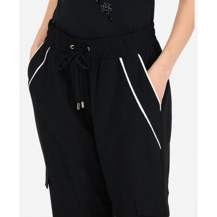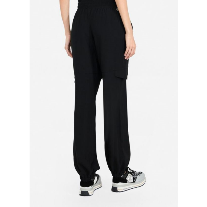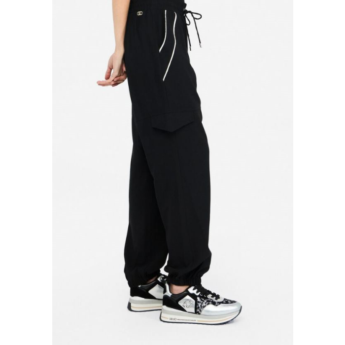 Pantalón de chándal negroConfeccionado en crepé elásticoCinturilla elástica con cordón de ajuste en la cinturaBolsillos en los lateralesMotivo de rayasBanda elástica en el bajoBolsillos cargoProducto "Liu Jo Better"