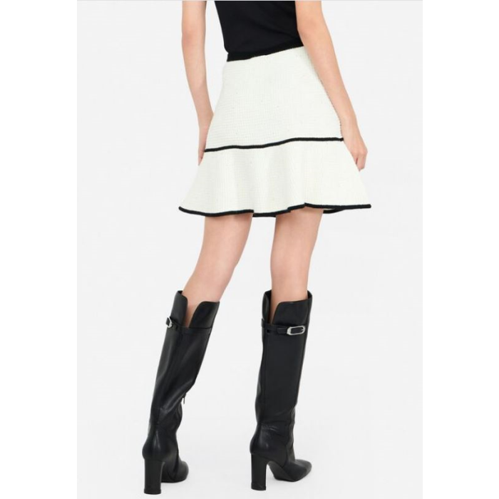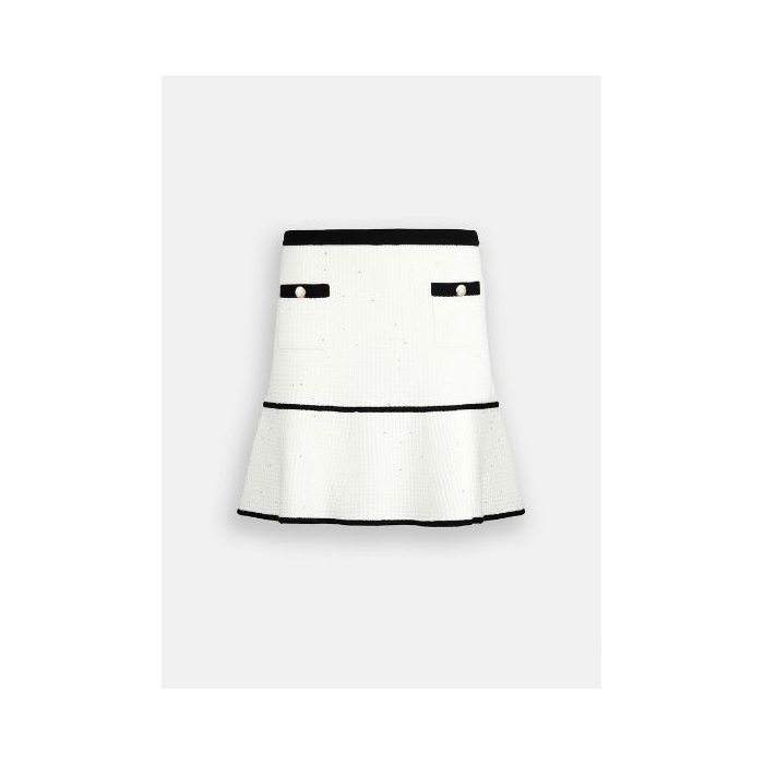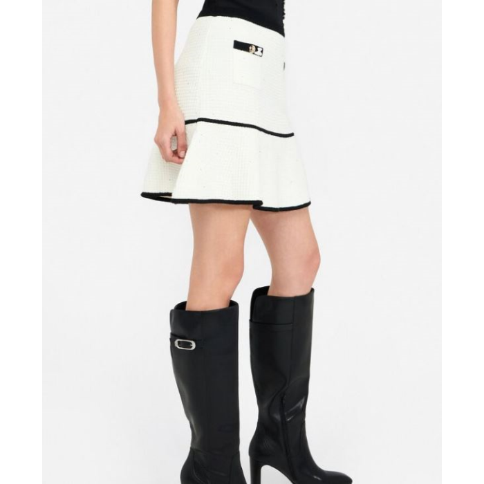Minifalda blanca con bordes en contraste Modelo confeccionado en punto de mezcla de viscosa y lurex® Tejido en punto waffle Cinturilla elástica Bolsillos con botón dorado con logotipo Producto "Liu Jo Better"