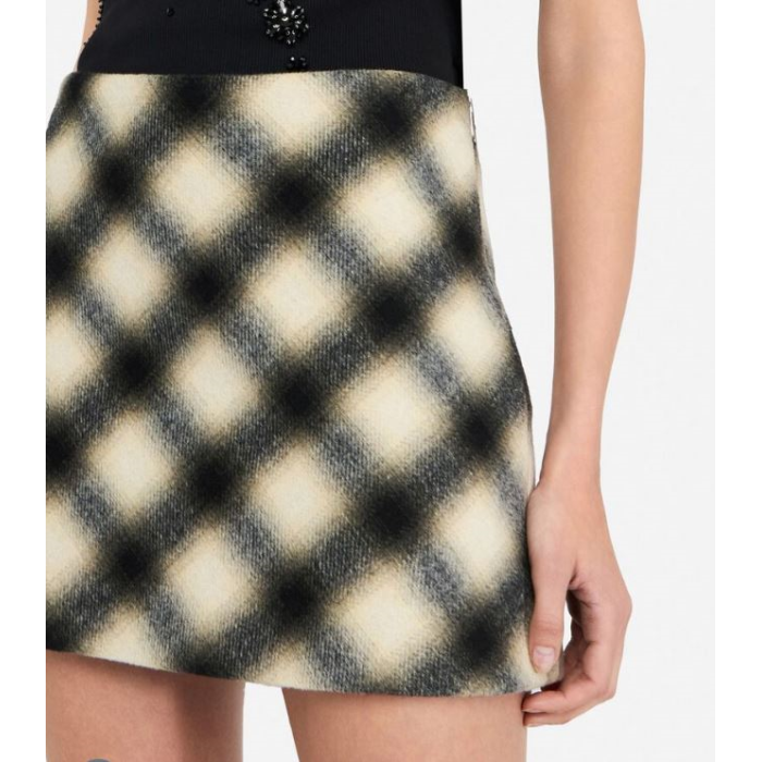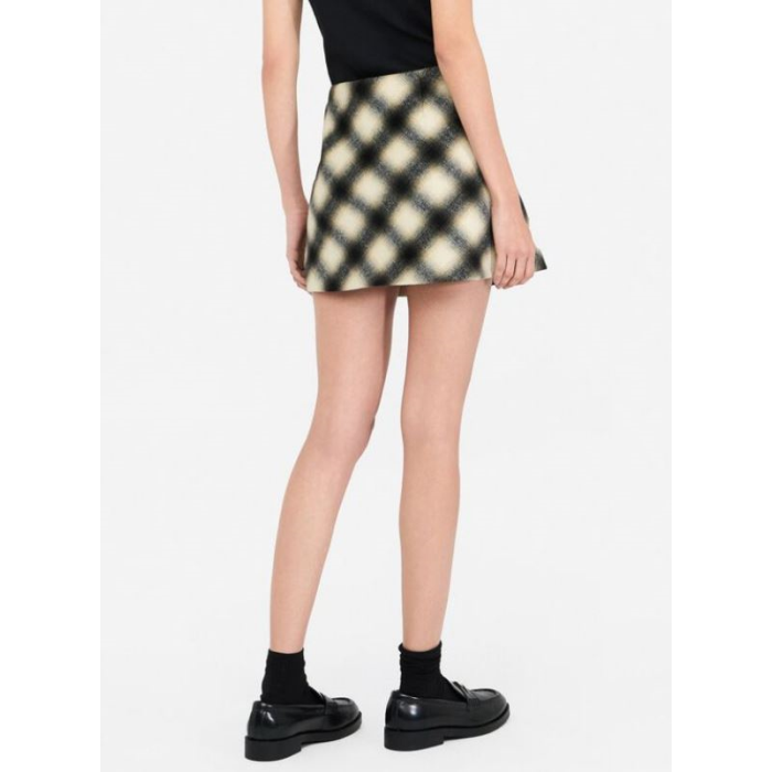 Falda corta de mezcla de lanaMotivo de cuadrosCierre con cremallera oculta