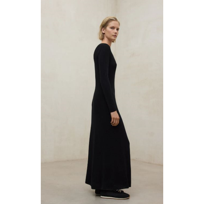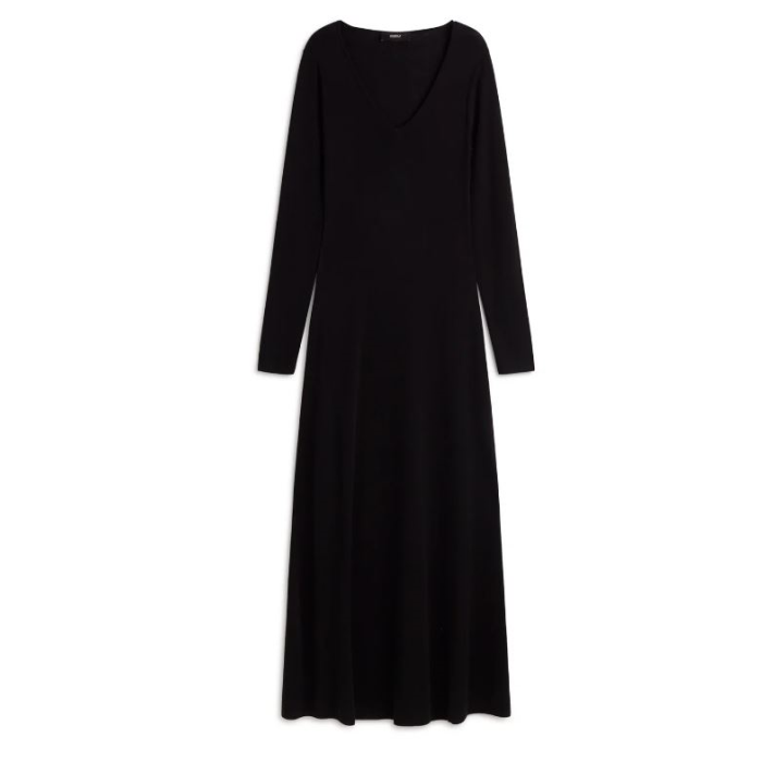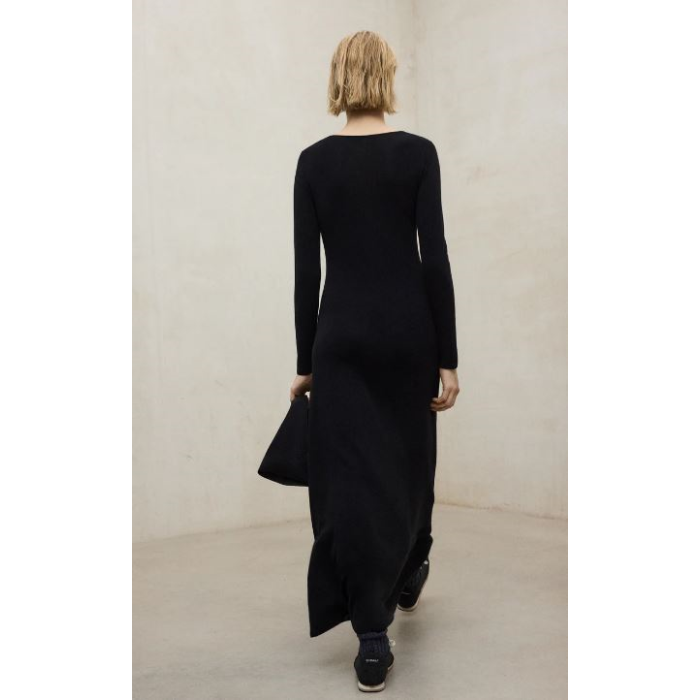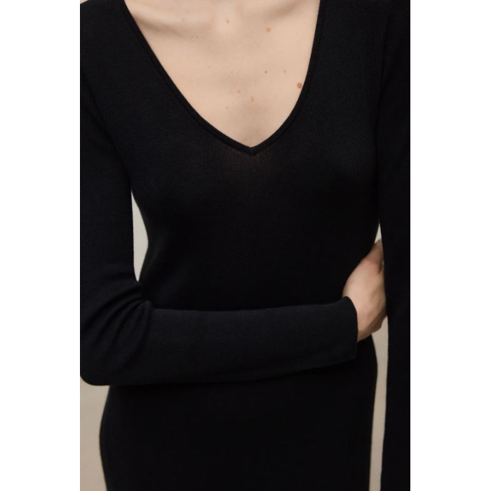 VESTIDO ARIS NEGROEl Vestido Aris tiene una composición de 70% TENCEL™ Lyocell y 30% Algodón orgánico. Las fibras TENCEL™ Lyocell provienen de pulpa de madera de bosques certificados y con procesos de circuito cerrado siguiendo los estándares ambientales más altos.Corte slimEscote en VPunto de canalé 14 GG